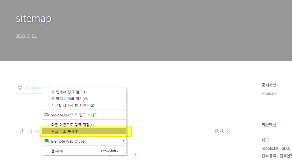 사이트맵 파일 만드는 방법, 생성 후 웹 마스터 도구 검색등록 하기