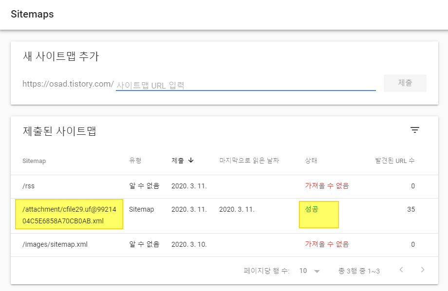 모두 사이트맵 파일 제출에 성공하시길 바랍니다 ^^