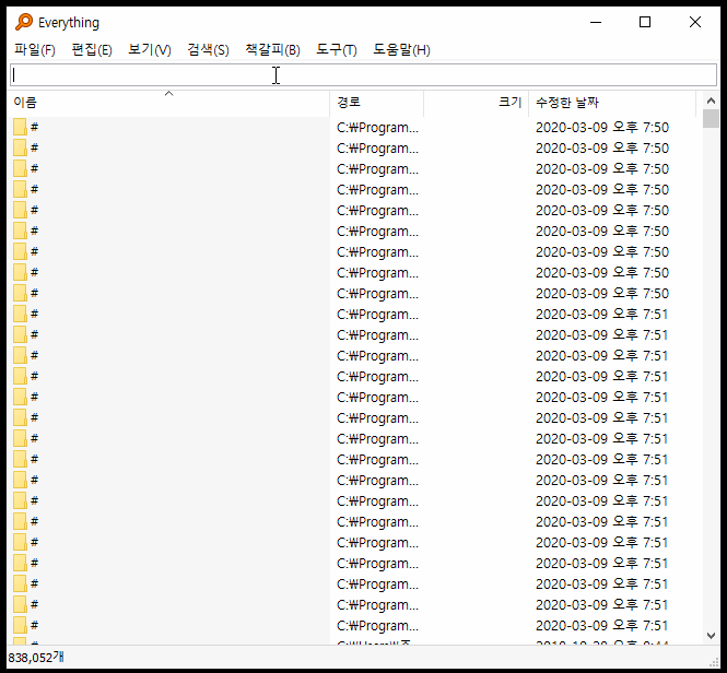 Everything 실시간 파일/폴더 검색 작은 설치파일 깔끔하고 단순한 UI 빠른 파일 색인 빠른 검색 최저 자원 사용 쉬운 파일 공유 실시간 갱신 등등... Everything 1.4.1.969 다운로드 32비트 설치파일 64비트 설치파일 32비트 휴대용 압축파일 64비트 휴대용 압축파일 변경 이력새 기능구버전라이선스SHA256지원 언어도움말