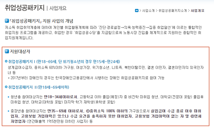 취업성공패키지 대상자를 확인할 때 중요한 지표가 되는 것 같았다.