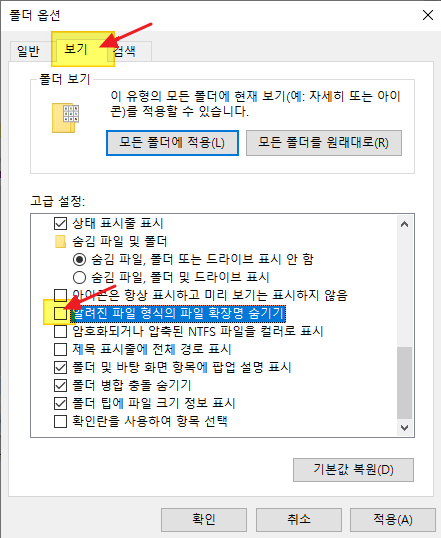 2-2. 파일 확장자명이 보이지 않는다면?