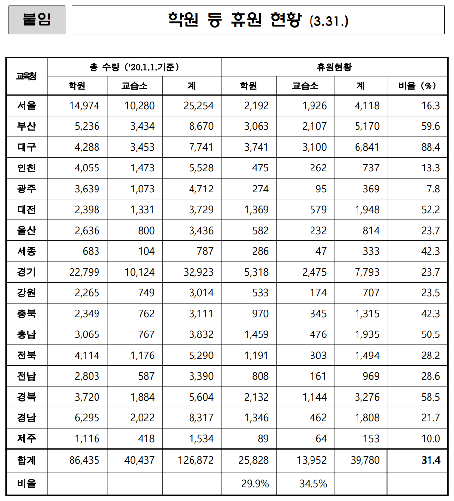 정규교육과정에 대한 내용은 있는데, 학원 휴원 일정도 있지만, 취업성공패키지를 진행하고 있는 입장에서 직업훈련에 관한 내용도 있었으면 좋겠다는 생각이 듭니다. 오프라인 수업을 할 수 밖에 없는 과목도 있어서 온라인 수업으로 통일하기가 어려울 것이고, 이런 격변의 정책이 시행되는 과정에서 여력이 없겠지만, 취업성공패키지 직업훈련일정이 학원별로 상이하게 연기되고 있는 상황에서 관련 대책도 있었으면 좋겠다는 생각이네요.