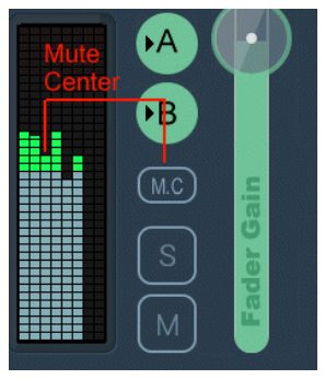 가상 입력의 MUTE CENTER 버튼은 5.1 또는 7.1과 같은 다중 채널 모드에서 재생되는 DVD의 대화 상자를 음소거하도록 만들어진다.