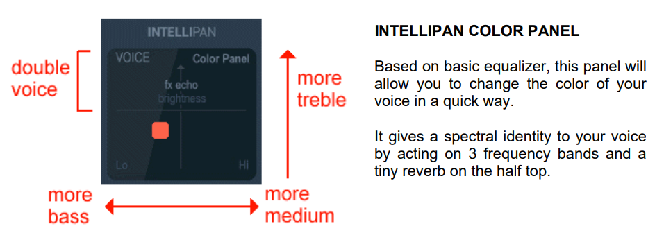 이 패널은 기본 이퀄라이저를 기반으로 음성 색상을 빠르게 변경할 수 있도록 해 준다.