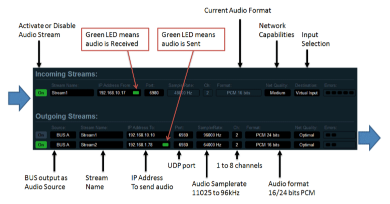 주 오디오 출력 장치 A1은 32kHz, 44.1kHz, 48kHz, 88.2kHz, 96kHz, 176.4kHz 또는 192kHz에서 작동할 수 있다. 이 샘플링 속도는 모든 혼합 처리 및 가상 ASIO 포인트에 사용된다(Voicemeeter는 다른 입력 또는 출력 포인트의 샘플링 속도를 지원한다).