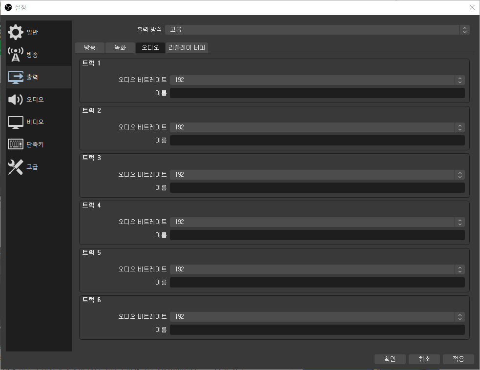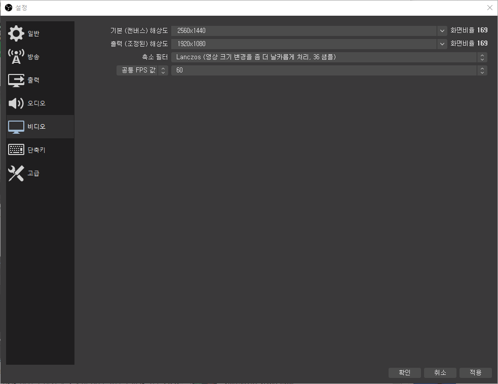 이렇게 기본적인 녹화 설정은 끝났습니다. 저는 방송은 하지 않기 때문에 방송 설정에 대해서는 다루지 않았는데요, 설정 창에서 [방송]탭과 [출력 - 방송]탭에서 설정을 맞춰주시면 되는 부분입니다. 이 부분은 기회가 된다면 다음에 다뤄보도록 하겠습니다.