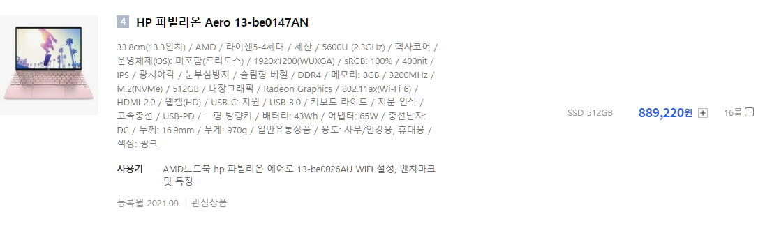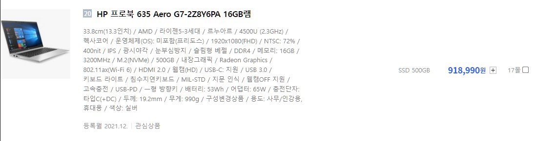 보다보니 등록일도 제각각이고... CPU기준으로 라이젠은 현재 4세대 까지 나온 모양이고, 인텔은 12세대 까지 나온 것 같다. 위 리스트에서는 등록일이 작년 6월인 HP만 가장 최신 CPU를 쓰고 있다는 소리다.