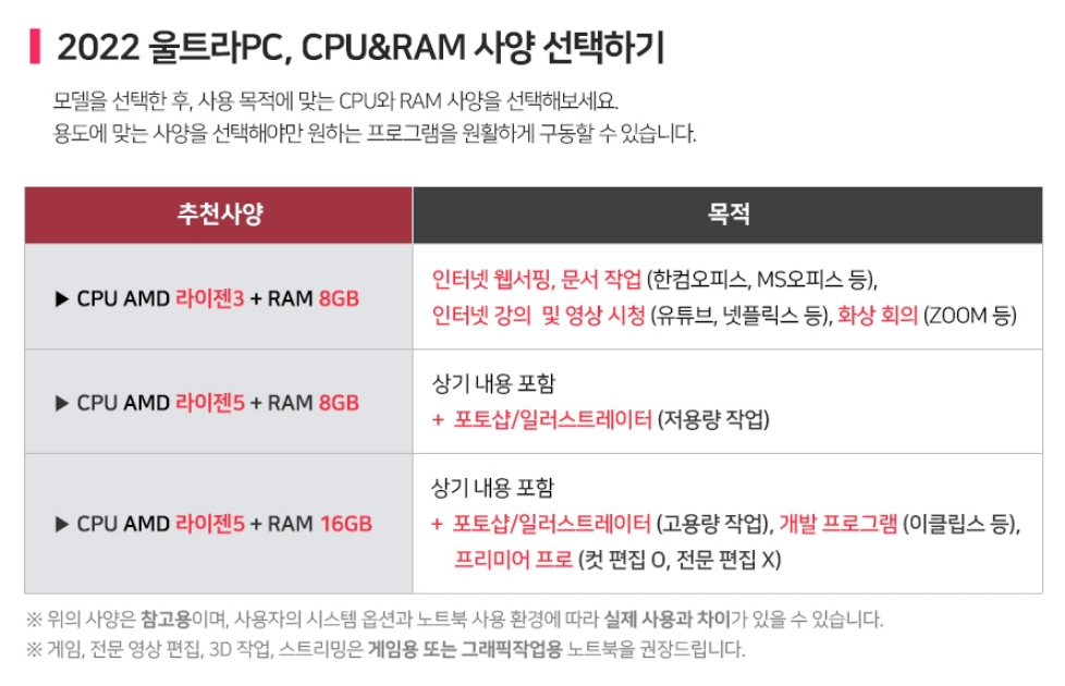 내 경우 게임은 제쳐두고 간단한 영상편집이나 포토샵 보정 정도까지 가능하면 좋고 좀 버벅이거나 하는건 크게 문제가 되지 않을 것 같다.