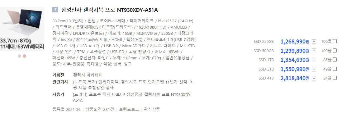 이번에 업무용으로 노트북이 하나 필요해서 구매예정에 있다.