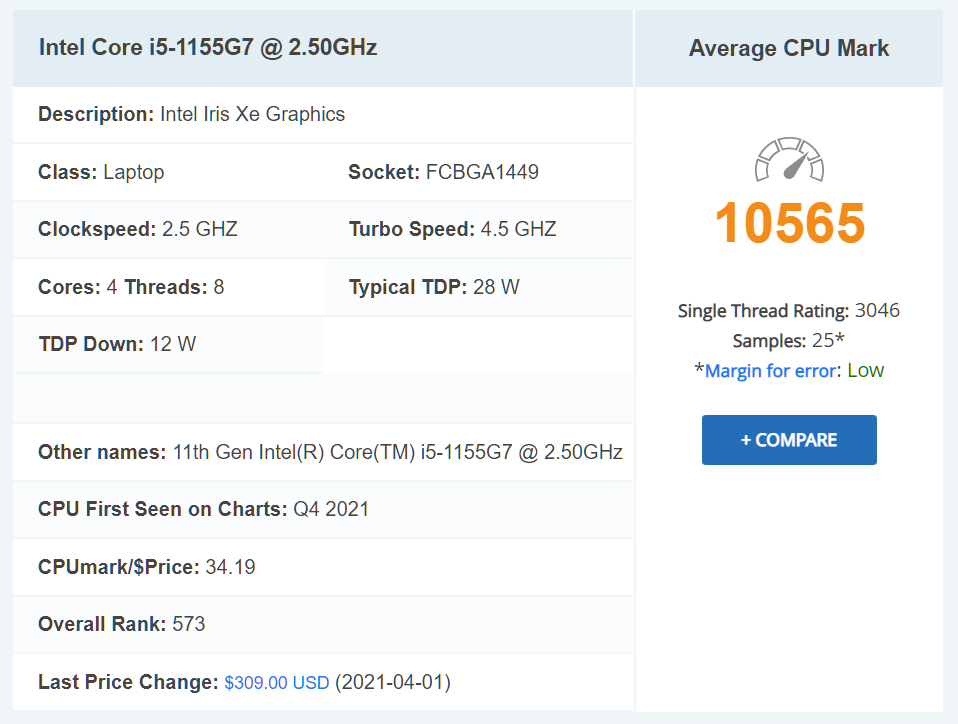 라이젠 5500U보다는 못한 성능으로 보인다.