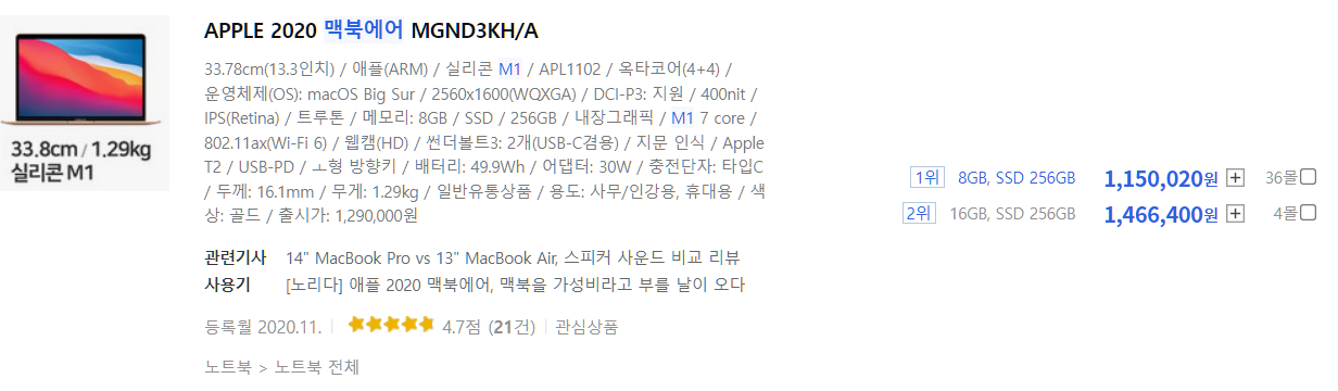 하지만 그 가격이라면 256GB로 용량이 내려오긴해도 맥북에어m1도 용의선상에 들어오는 가격이다.