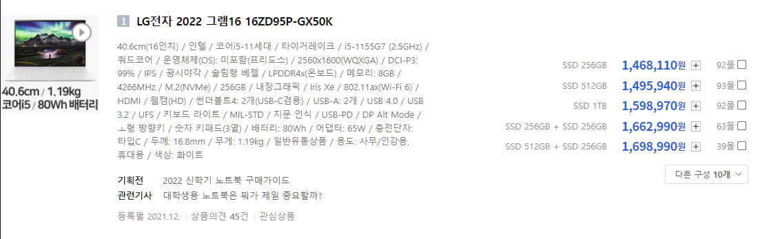 | 노트북을 고르는 과정 - 6) LG 울트라 PC 80만 (0) | 2022.02.25 |