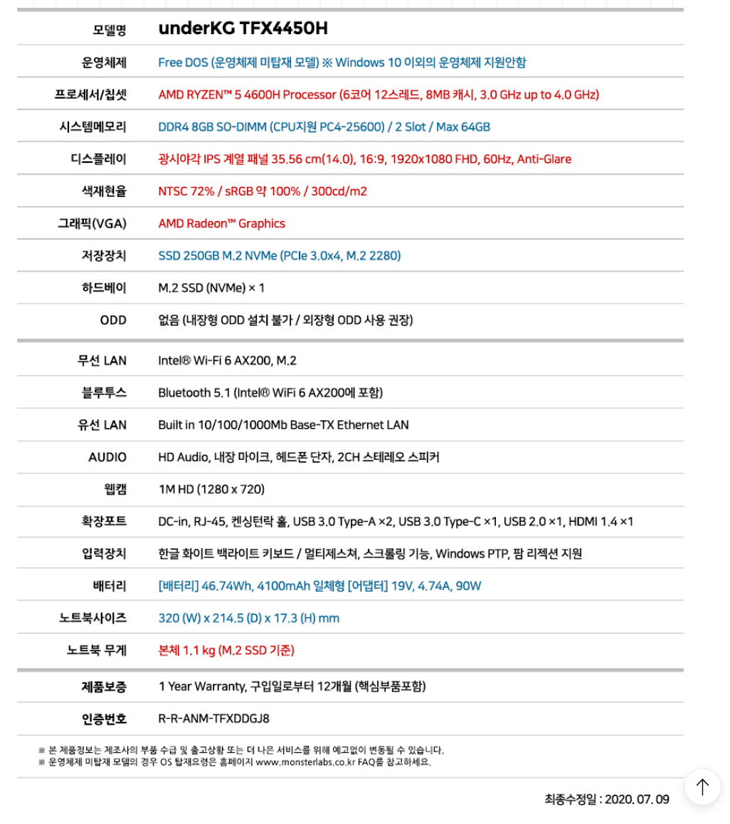 언더케이지 TFX4450H/울트라북/AMD 르누아르/R5-4600H