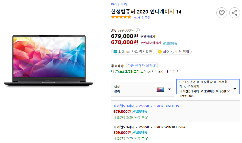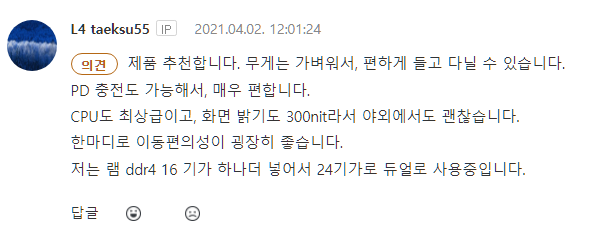그럼 외장그래픽이나 인텔CPU의 메리트가 없는 모델이라는 생각이 든다.