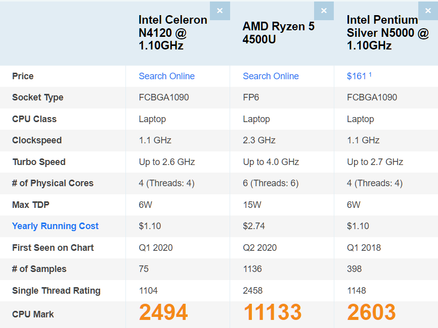 위와 같은 모델들은 모두 셀러론 CPU를 사용하고 있다.