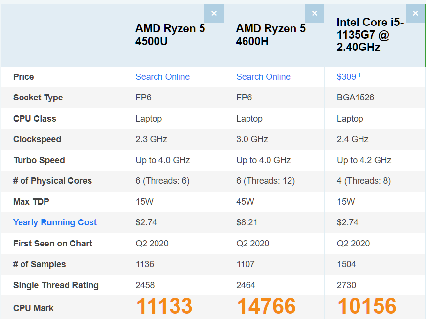 세 모델 각각 CPU가 다른데, PassMark 점수를 살펴보면 언더케이지 모델이 사용하고 있는 4600H가 가장 성능이 좋다.