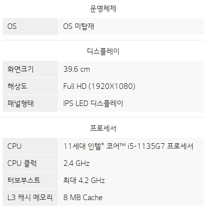 기본구성은 [램 8GB + NVMe SSD 256GB + 프리도스] 다.