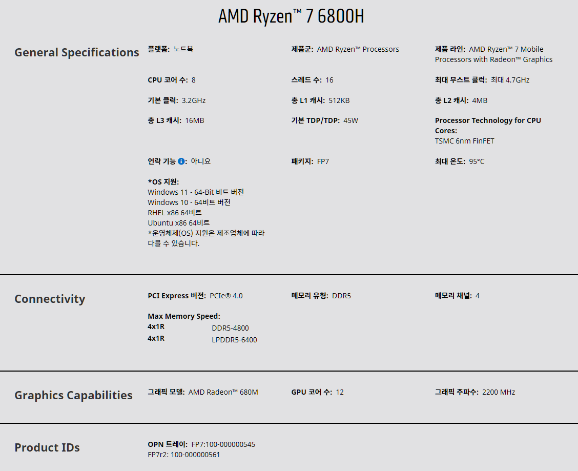 AMD Ryzen 7 6800H Processor - Benchmarks and Specs